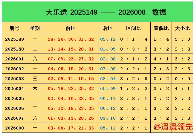 上期回顾:大乐透第2026008期奖号为:前区03、06、17、21、33,后区05、11,前区奖号三区比为2:2:1,奇偶比为4:1,大小比为2:3问鼎娱乐,后区开出小大组合05、11