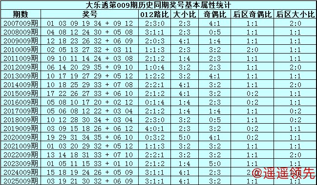 后区判断:后区第009期历史同期奖号大小比总比例为4:15,大号热出,本期预计大号继续热出,防全大,参考两码08、10。